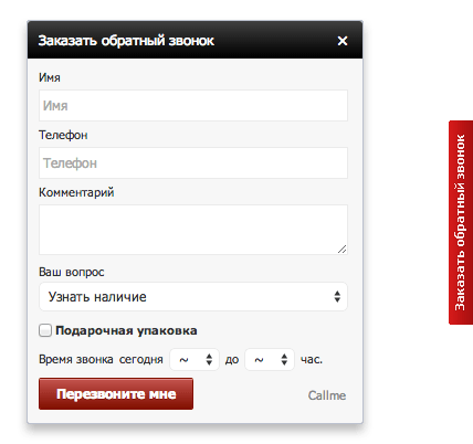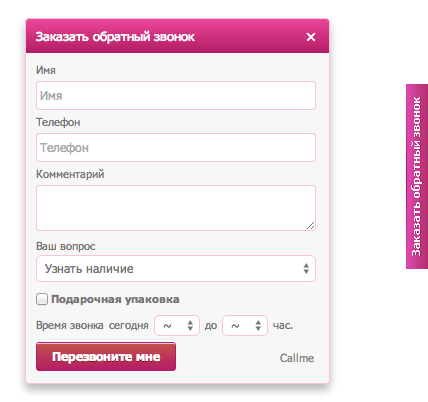 Надпись на кнопке | Перезвоните мне |